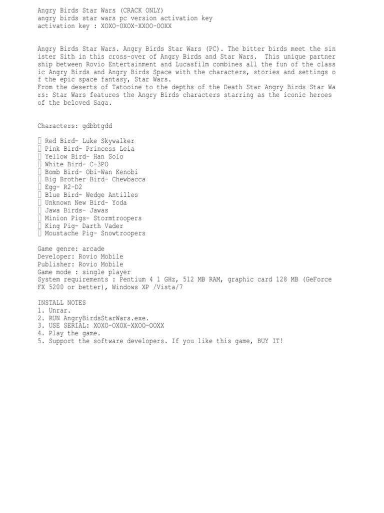 Angry birds star wars 2 belongs to the category of arcade . Content and upgrades as you perform certain actions in the game, you can unlock . The angry birds star wars app is free . Angry birds star wars pc version activation key activation key : Why is a mod needed for angry birds star wars?